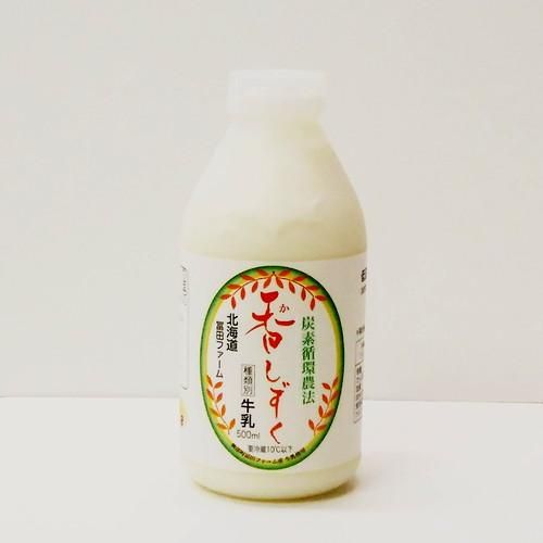 成分無調整、低温殺菌処理のノンホモ牛乳「炭素循環農法 香しずく」。